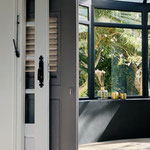 Mit ähnlich gemütlichem Charme passt sich auf der unteren Ebene des Hauses der Wohnbereich mit einem weiteren großen und offenen Kamin, hohen Decken und dem idyllischen Wintergarten an.